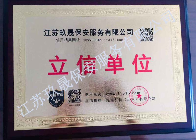 江蘇玖晟保安服務(wù)有限公司成立于江蘇省昆山市千燈鎮(zhèn)。注冊(cè)資金:2000萬,是擁有省公安廳頒發(fā)的保安服務(wù)許可證的企業(yè)【蘇公保服20170046】,也是昆山市保安協(xié)會(huì)常務(wù)理事單位。